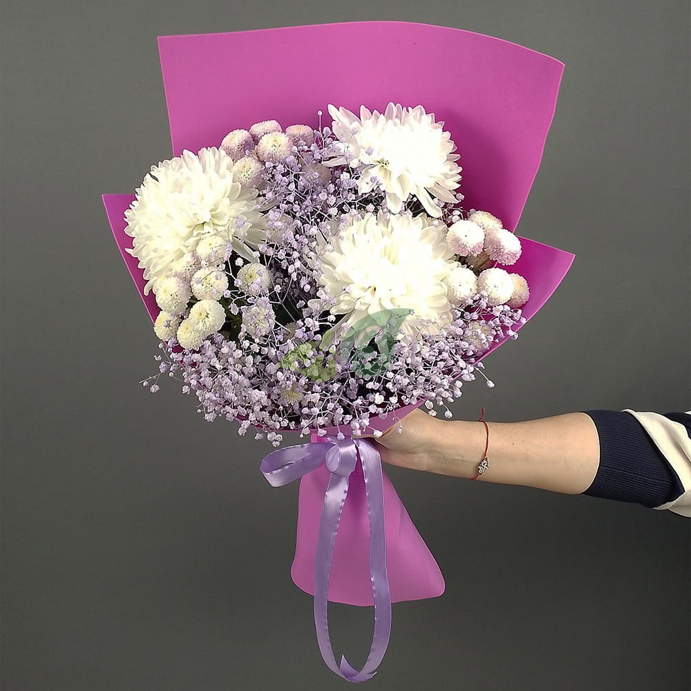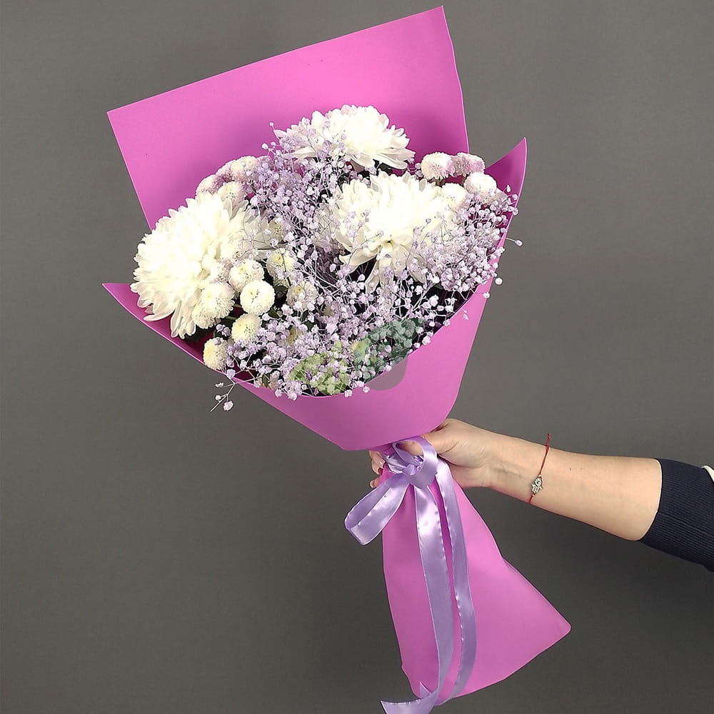 Состав и характеристики букета из хризантем "Нежный шелест":